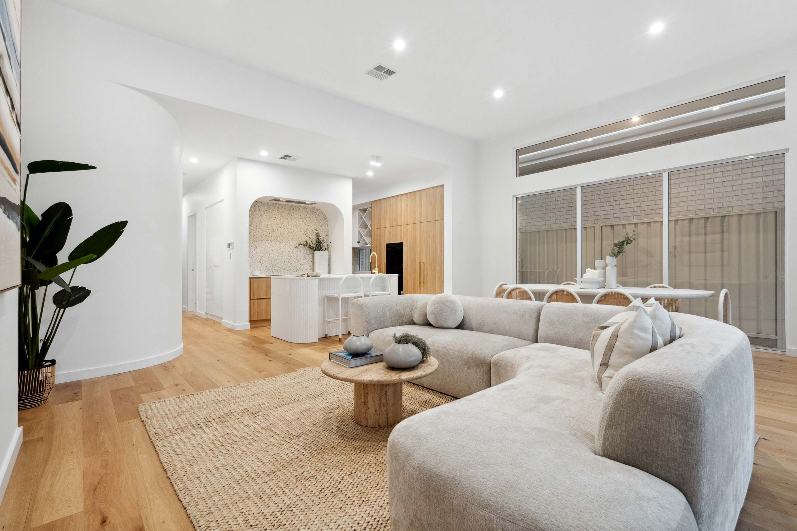 Considered curves, honest materials and seamless indoor–outdoor living make this MyHomeBuild Glengowrie residence a refined example of coastal house design plans in Adelaide, where Art Deco character meets contemporary comfort.